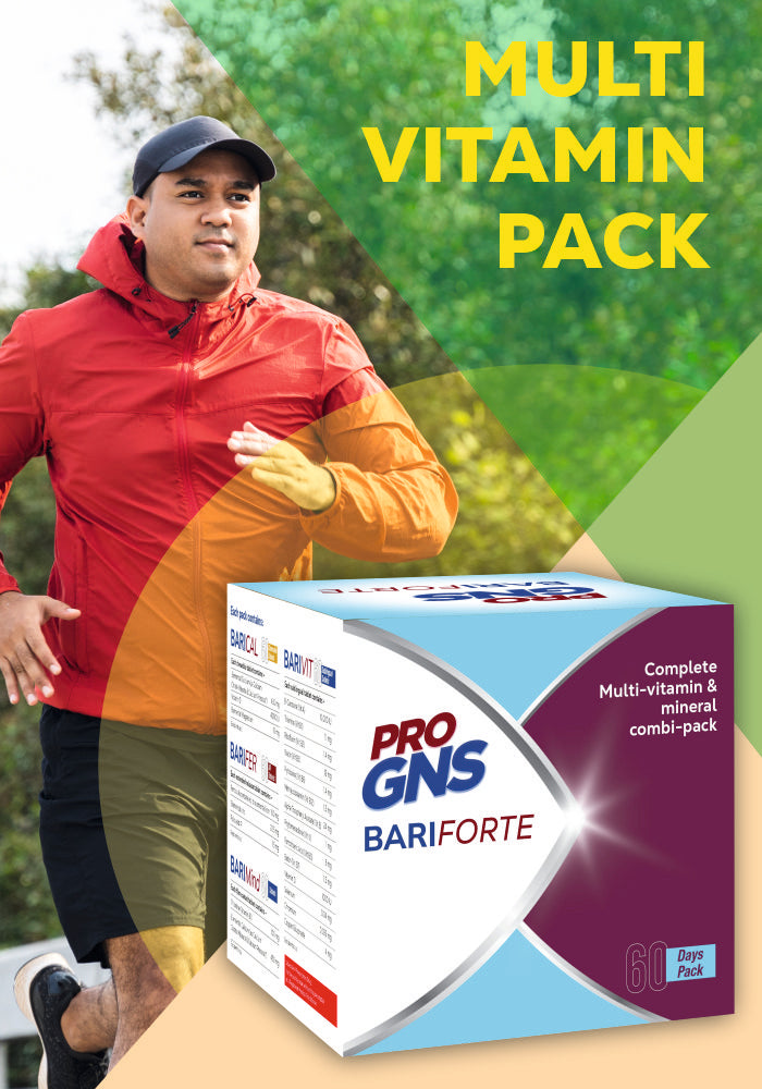 ProGNS Bariforte is a unique multivitamin combi-pack that helps people with bariatric surgery achieve 100% micronutrient supplementation & deficiency related complications